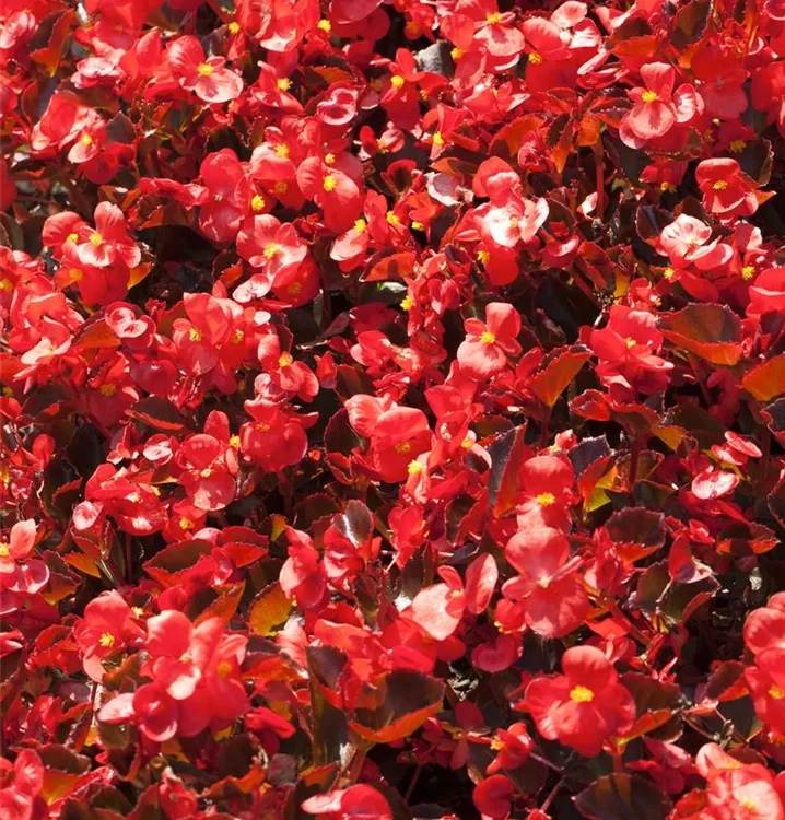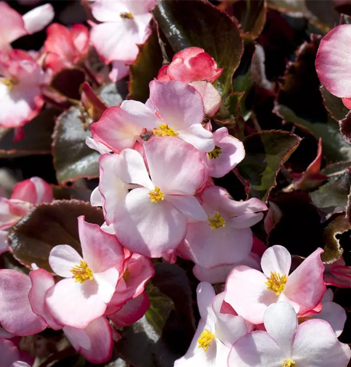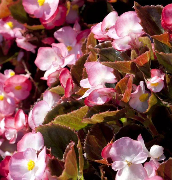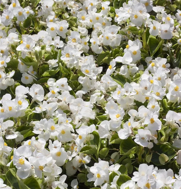 Die Eis-Begonie (Begonia semperflorens) ist eine beliebte Pflanze für den Balkon. Die unzähligen Blüten erscheinen, je nach Sorte, in verschiedenen Farben die ganze Saison hindurch. Ein sonniger bis halbschattiger Standort und ein durchlässiges Substrat werden bevorzugt.