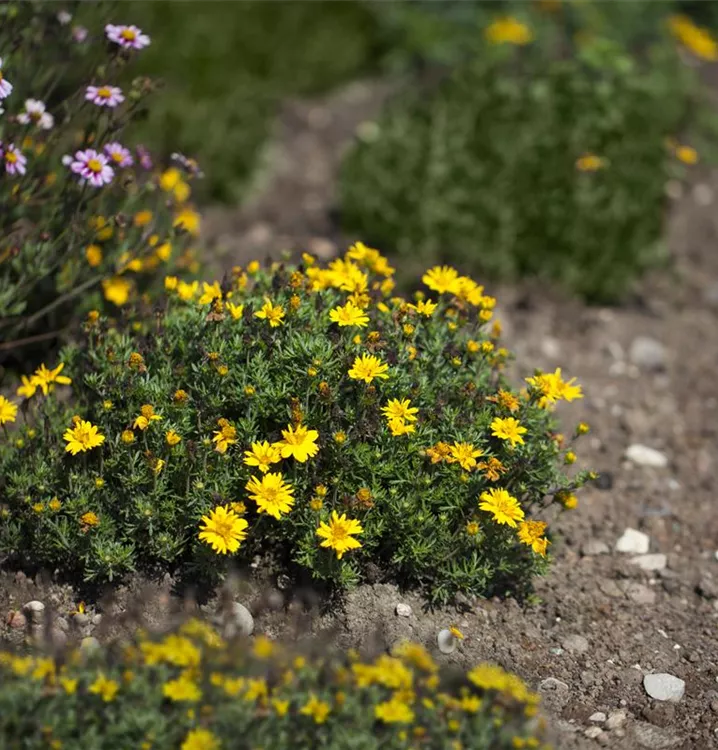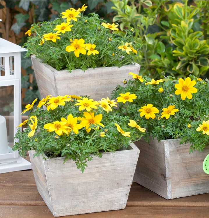 Die Goldmarie (Bidens ferulifolia) ist eine beliebte Pflanze für den Balkon. Die unzähligen Blüten erscheinen, je nach Sorte, in verschiedenen Farben die ganze Saison hindurch. Ein sonniger Standort und ein durchlässiges Substrat werden bevorzugt.