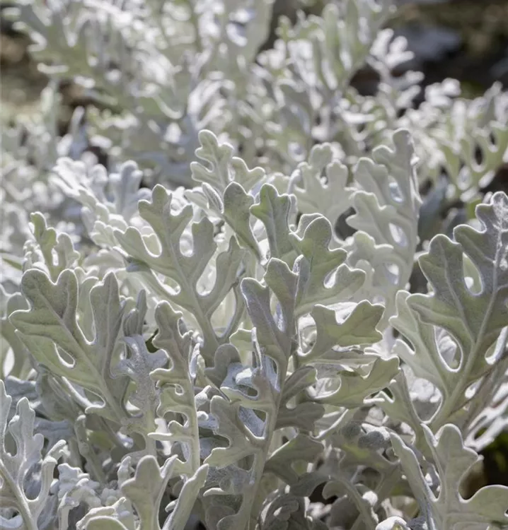 Das Silberblatt (Senecio cineraria) besitzt dekorative, silbergraue Blätter. Ein halbschattiger Standort und ein durchlässiges Substrat werden bevorzugt.