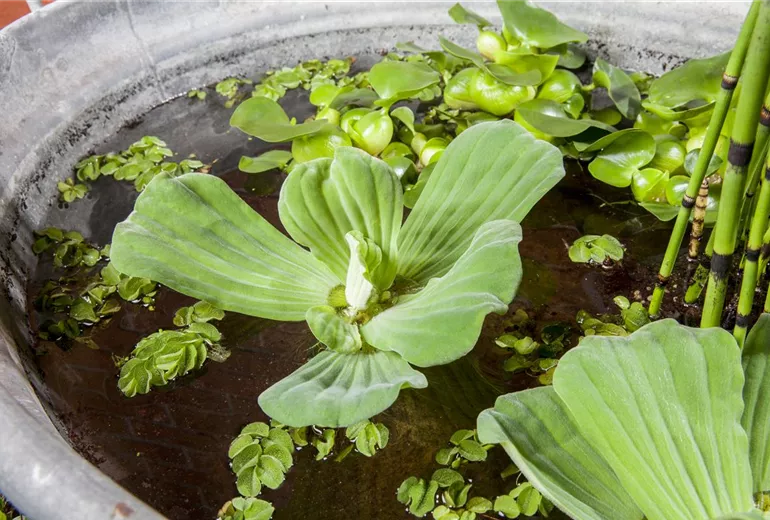 Nicht ganz so einfach wie im Freien ist die Pflege des Teichs. Und selbst im Freien ist der Selbstreinigungseffekt oft nicht ausreichend ausgeprägt aufgrund der geringen Wassermenge. Und so lässt es sich nicht vermeiden, dass aus abgestorbenen Pflanzenteilen eine Schlammschicht am Boden entsteht. Wird diese zu dick, „kippt der Teich um“ und riecht mehr als unangenehm. Bevor das passiert, lohnt ein Teichsauger, der die Schlammschicht ähnlich einem Staubsauger anzieht, von wo sie dann entsorgt werden kann.