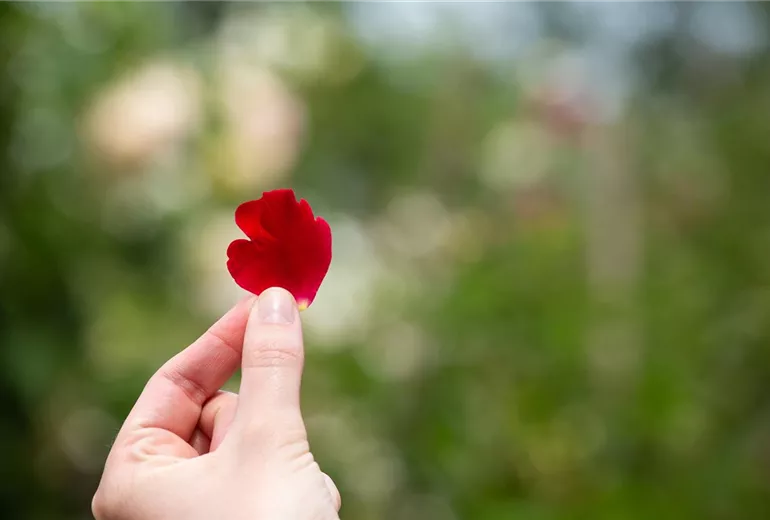 Allein der Duft einer Rose wirkt beruhigend, versöhnlich und tröstet bei schlechten Gedanken. Kein Wunder also, dass die Rose nicht nur im Garte zu finden ist, sondern auch in den unterschiedlichsten kosmetischen Artikeln. Die Blätter der Rosen enthalten ätherische Öle, die den Duft der Rose ausmachen. Die ätherischen Öle in den Rosenblättern wirken entzündungshemmend und werden deshalb schon seit vielen Jahren bei Ekzemen und kleineren Hausverletzungen eingesetzt. Und selbst bei Insektenstichen können Rosen helfen. Einfach ein paar Blätter zwischen den Fingern zerreiben und den dabei austretenden Saft auf den Stich reiben. Eigentlich gibt es nichts, das Rosen nicht können: sie helfen bei Verdauungsstörungen, stärken den Kreislauf und das Herz und haben einen abschwellenden Effekt. Verwendet werden können alle duftenden Rosen, die im Garten zu finden sind. Wichtig ist nur, dass die Rosen nicht gespritzt sind. Egal ob im Tee, als Öl oder im Wasser: die Wirkung von Rosenblättern ist einmalig und wird seit vielen 1000 Jahren geschätzt.