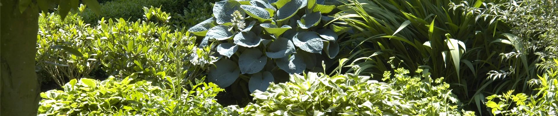 Die Blätter der Blattschmuckpflanzen können aber nicht nur besonders groß, sondern auch besonders bunt werden. Der Star unter den Blattschmuckpflanzen ist die Funkie. Sie zeigt sich mit gelbbunten, blauen oder grünen Blättern und weißen Rändern. Funkien sind für den Halbschatten besonders gut geeignet, weil ihre hellen Blätter in der Sonne schnell verbrennen würden. Kombiniert mit ein paar Ziergehölzen und Bodendeckern verwandet die Funkie schattige Plätze in farbenfrohe Ecken. Nicht zu unterschätzen sind auch die verschiedenen Nesselarten. Eine richtig gute Figur macht dabei die Schwarznessel. Sie liebt nicht nur die Sonne, sie überzeugt auch mit Blättern in einzigartigen Farben und Formen. Die oft unterschätzte Taubnessel steht ihr da aber in nichts nach und gehört ebenfalls zu den beliebten Blattschmuckpflanzen. Für den Auftritt im Hintergrund eignet sich der Wunderbaum hervorragend. Seine ganz besonderen Blätter bringen Farbe ins Spiel und machen den Garten im Sommer noch farbenfroher, als er ohnehin schon ist.