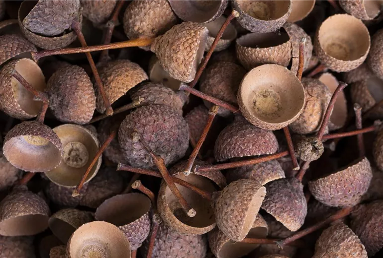 Wer seinem Makramee-Kranz noch den letzten Pfiff verleihen will, kann auch Herbstfrüchte in den Krank einarbeiten. Was sich nicht festbilden lässt, kann vorsichtig mit Heißkleber auf dem Krank befestigt werden.