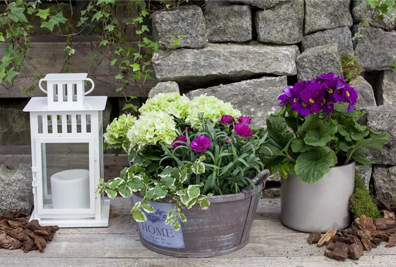 Bei Balkon- und Terrassenpflanzen kann man ältere Hortensien überwintern, indem man sie an die Hauswand rückt. Die Gefäße umwickelt man mit Jute, Vlies oder Pflanzenfolie und platziert sie auf einer Holzunterlage, denn das Wurzelwerk soll immer kältegeschützt sein. Nun muss man verhindern, dass die Pflanzen austrocknen. Regelmäßiges Überprüfen und Gießen sichert, dass man erfolgreich seine Hortensien überwintern kann. Aber auf ein Ablaufloch achten, damit sich keine Staunässe bildet. Diese mögen Hortensien grundsätzlich nicht und im kalten Winter wird das nicht besser!