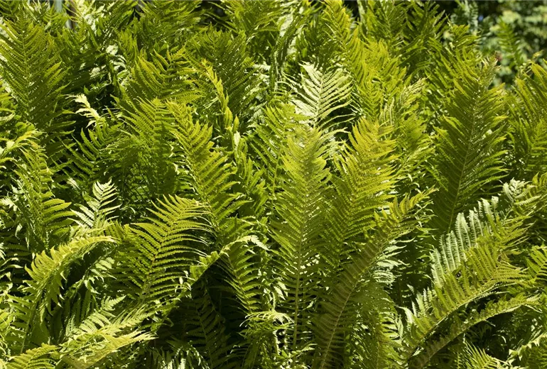 Farne sind ganz besondere Pflanzen im Garten – so viel steht fest. Sie gehören sogar zu den ältesten Pflanzen auf unserem Planeten. Schon vor mehr als 400 Millionen Jahren wuchsen sie in Wäldern und sind noch heute in unserer Braunkohle zu finden. Sie gehören zu den ersten Pflanzenarten und haben bis heute überdauert. Wer also einen langjährigen und treuen Mitbewohner im Garten sucht, der ist hier genau richtig. Die unterirdischen Rhizome sind sehr ausdauernd und können mehrere Jahre problemlos überleben. Vor allem im Frühjahr sind die Pflanzen sehr faszinierend. Denn dann zeigt sich der neue Austrieb. Dieser wird schon im Herbst gebildet und bleibt bis zum Frühjahr aufgerollt. Damit sind sie vor dem Winter geschützt und können sich im Frühjahr unbeschadet ausrollen. Das Aussehen der aufgerollten Wedel erinnert ein bisschen an Bischofsstäbe oder Geigenköpfe. So oder so sind Farne im Garten etwas ganz Besonderes. Mit ihrer satten Farbe leuchten sie im lichten Schatten umso mehr und begrünen damit Stellen, die andere Pflanzen eher meiden würden.