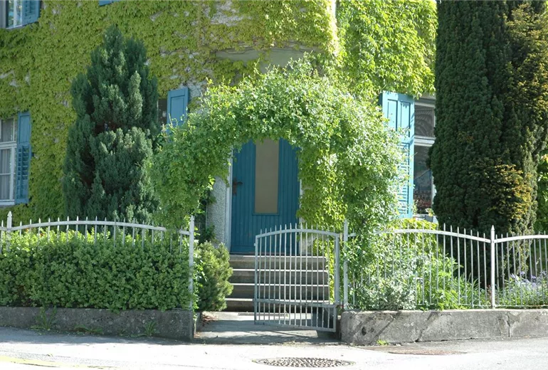Sollen Kletterpflanzen in die Höhe wachsen, benötigen die meisten unter ihnen eine stabile Rankhilfe. Dies kann ein herkömmliches Rankgitter sein, das zudem auch noch in unbegrüntem Zustand äußerst dekorativ aussehen kann. Aber auch größere Rankgerüste oder Spaliere kommen als Rankhilfe in Frage, sollen Kletterpflanzen beispielsweise Hauswände erklimmen. Die Kletter-Hortensie oder der Efeu sind wahre Künstler unter den Kletterpflanzen. Sie können auch ohne Rankhilfe jede Hauswand erobern. Sollen Kletterpflanzen als Sichtschutz eingesetzt werden, kommen unter anderem auch Blumenkästen mit Rankgitter in Frage, in denen sich sogar mehrjährige Kletterpflanzen wohlfühlen. Ob Hopfen, der auch im Halbschatten gut gedeiht, Kletterrosen, Efeu oder Passionsblumen: Wer Kletterpflanzen als Sichtschutz einsetzen möchte, kann meist zwischen Selbstklimmern, rankenden und schlingenden Kletterpflanzen wählen. Ist ein Zaun als Unterstützung für die Begrünung der Kletterpflanzen vorhanden, können Clematis, der echte oder auch wilde Wein eine schicke Lösung sein. Während einige Kletterpflanzen aufgrund ihrer üppigen Blütenpracht sehr beliebt sind, fallen andere wiederum durch ihre schöne Färbung der Blätter auf. Es gibt also eine große Auswahl an geeigneten Kletterpflanzen, die als Sichtschutz eine gute Figur machen.