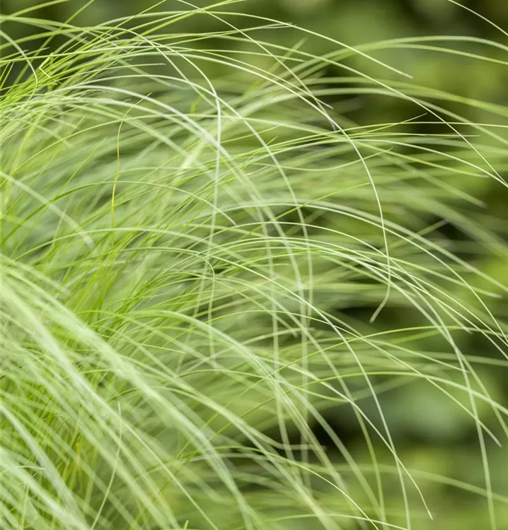 Das Zarte Federgras (Stipa tenuissima) ist mit seiner hellgrünen Blattfärbung ein dekoratives Gestaltungselement im Garten, welches sich an einem sonnigen Standort mit einem möglichst durchlässigen, lockeren Boden am wohlsten fühlt. Die cremeweißen Blütenwedel schmücken die ausladend und horstbildend wachsende Pflanze ab Sommer. Bei günstigen Bedingungen erreicht dieses winterharte Gras eine Höhe von ca. 50 cm und wird bis zu 30 cm breit.