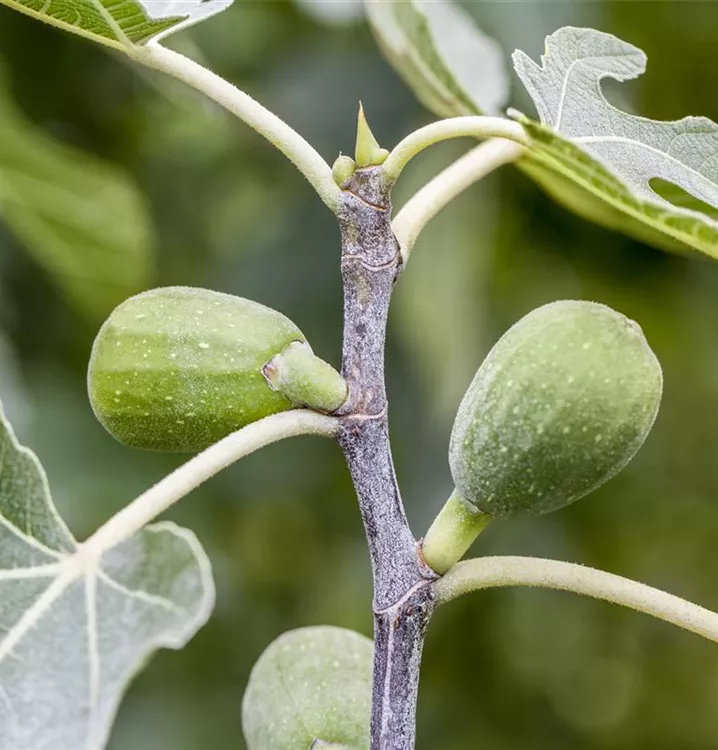 Die Echte Feige (Ficus carica) bildet braune, gelb-grüne, violette Früchte. Sie sind birnenförmig und haben einen süßen Geschmack. Für eine ertragreiche Ernte ab August schaffen durchlässiger, lehmiger Boden und ein sonniger Standort optimale Bedingungen. Auch ihre weißen Blüten sind eine schöne Erscheinung.