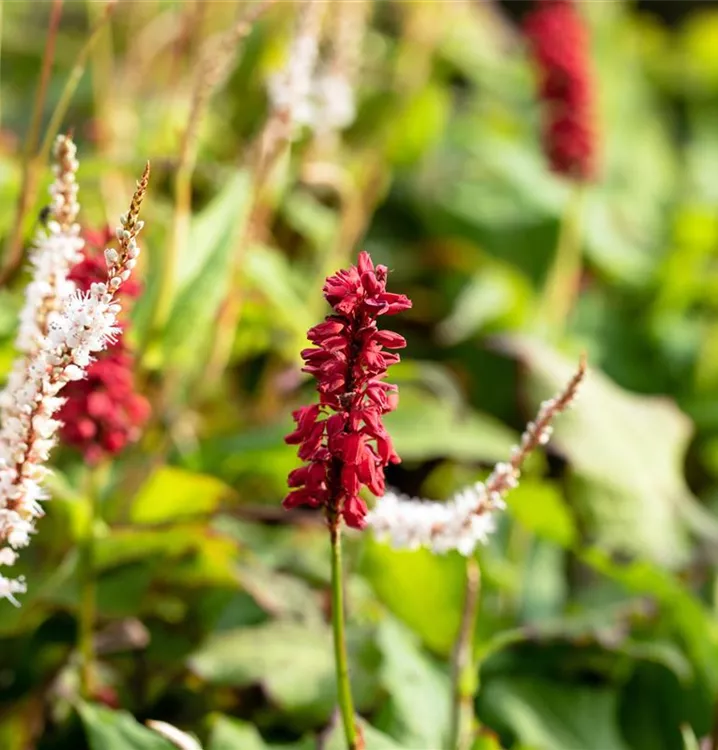 Der Kerzenknöterich (Bistorta amplexicaulis) ist eine aufrechte, horstbildende Staude, die von Juli bis Oktober scharlachrote, in Rispen angeordnete Blüten bildet. An einem sonnigen bis halbschattigen Standort mit durchlässigem, humosem, nährstoffreichem Boden erreicht er gewöhnlich eine Höhe von ca. 1,2 m und wird ca. 60 cm breit. Der Kerzenknöterich ist gut frostverträglich.