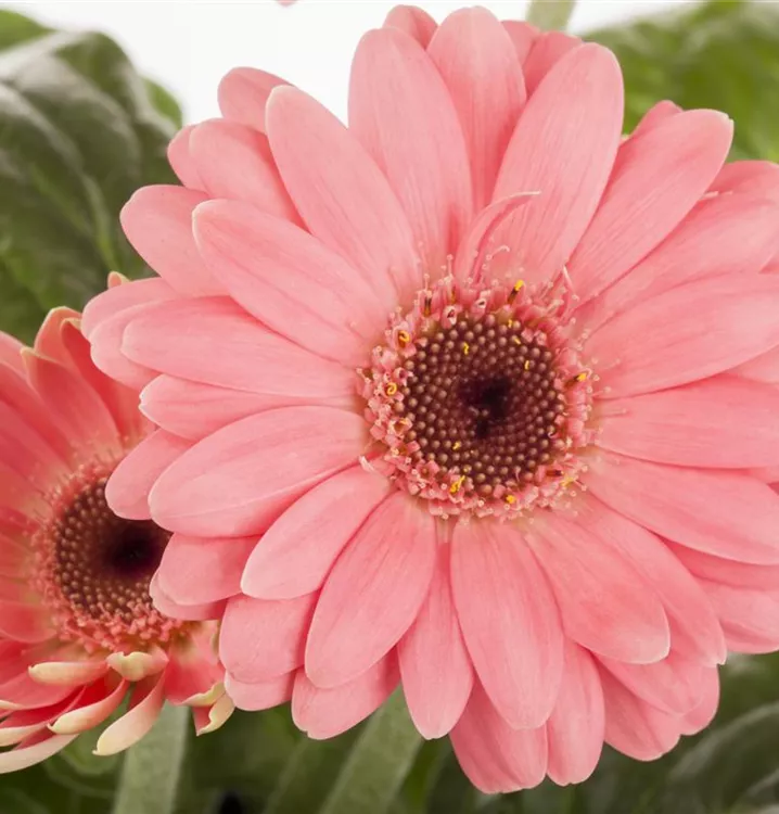 Die sommergrünen Blätter der Gerbera sind dunkelgrün, lanzettlich, gelappt.