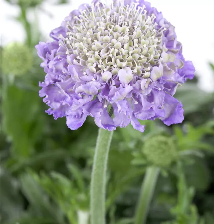 Die Tauben-Skabiose (Scabiosa columbaria) ist eine buschige Staude, die von Mai bis Oktober blaue Blüten bildet. An einem sonnigen Standort mit durchlässigem, nährstoffreichem Boden erreicht sie gewöhnlich eine Höhe von ca. 40 cm und wird ca. 30 cm breit. Die Tauben-Skabiose ist gut frostverträglich.