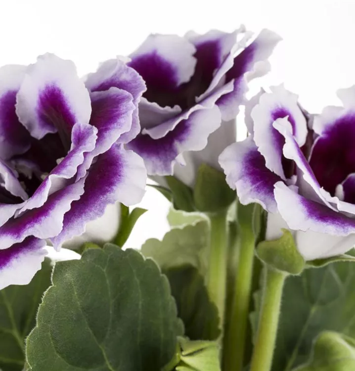 Die Falsche Gloxinie (Sinningia speciosa) blüht über Monate hinweg. Je nach Sorte, erscheinen die dekorativen Blüten in den Farben Rosa, Rot, Violett und Zweifarbig. Die matten, eiförmigen Blätter sind gekerbt. Bevorzugt wird ein heller Standort und eine durchlässige Erde.