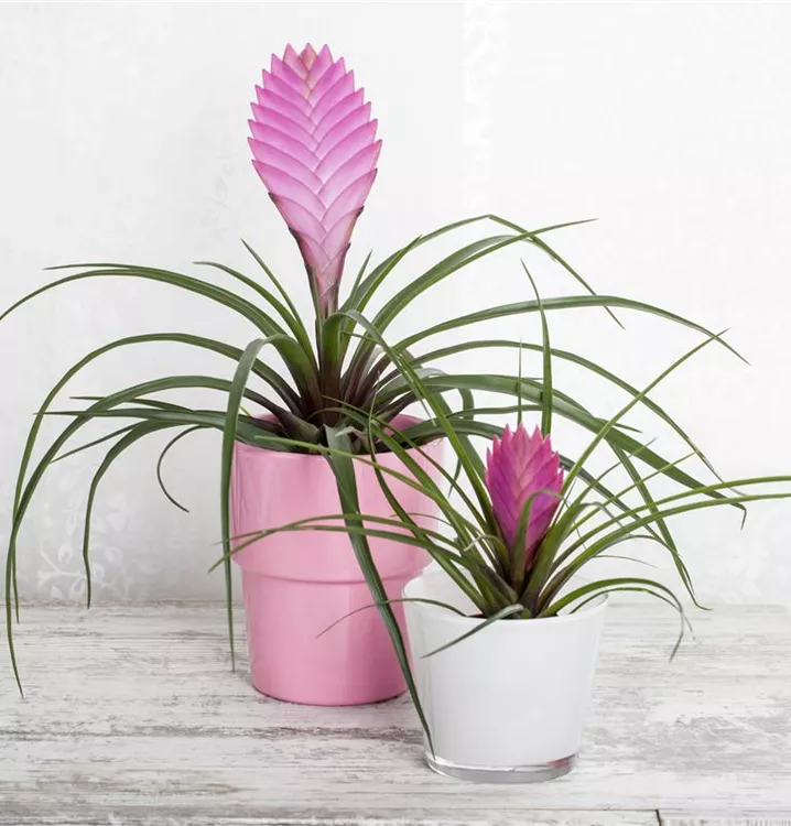Die Tillandsie (Tillandsia) blüht über Monate hinweg. Je nach Sorte, erscheinen die dekorativen Blüten in den Farben Weiß, Gelb, Orange, Rot und Rosa. Bevorzugt wird ein sonniger bis halbschattiger Standort und eine durchlässige Erde.