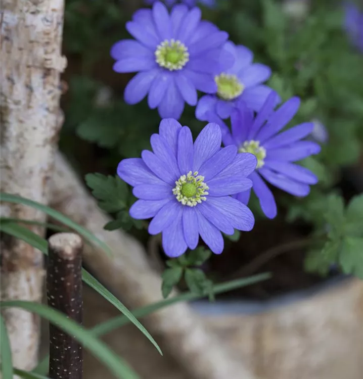 Das Strahlen-Windröschen (Anemone blanda) bringt ansehnliche, blaue Blüten von März bis Mai hervor. Bevorzugt wird ein durchlässiger, humoser, kalkfreier Boden in sonniger bis halbschattiger Lage. Die rhizombildende, horstbildende Staude erreicht gewöhnlich eine Höhe von 8 - 10 cm und wird bis zu 10 cm breit.