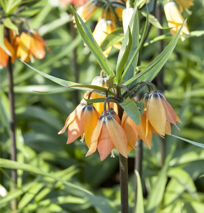 Die Kaiserkrone (Fritillaria imperialis) bringt ansehnliche, orange-rote Blüten von April bis Mai hervor. Bevorzugt wird ein durchlässiger, nährstoffreicher Boden in sonniger bis halbschattiger Lage. Die aufrechte Staude erreicht gewöhnlich eine Höhe von 1 - 1,2 m und wird bis zu 40 cm breit.